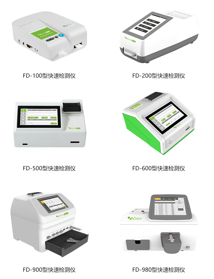 上海飛測生物針對不同檢測項目、使用場景和功能需求,已陸續(xù)推出了多款不同型號的FD系列熒光/膠體金快速檢測儀,滿足食品安全快速定量檢測的需要,可檢測真菌毒素、重金屬、農(nóng)藥殘留、轉(zhuǎn)基因、獸藥殘留、違法添加物等項目。儀器采用高效的激發(fā)和接收光學(xué)系統(tǒng)、精密控制算法和數(shù)據(jù)處理算法,實現(xiàn)了儀器的小型化、便攜化、智能化和網(wǎng)絡(luò)化,整個讀數(shù)過程僅需5s即可完成,通過二維碼掃描功能實現(xiàn)檢測樣本信息的自動讀取;通過內(nèi)置定量技術(shù),自動計算檢測結(jié)果。檢測結(jié)果可現(xiàn)場打印,也可通過GPRS實時傳送到溯源管理云平臺,實現(xiàn)檢測結(jié)果的自動分析、全過程質(zhì)量控制、檢測數(shù)據(jù)共享、溯源管理、大數(shù)據(jù)分析等功能,實現(xiàn)對食品安全的實時監(jiān)測和管理。