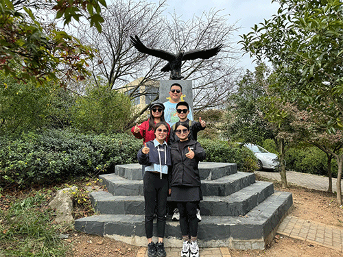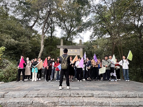 經(jīng)過一番艱苦的徒步之旅,我們終于到達(dá)了老鷹崖山頂,無論山有多高,也只在攀登者的腳下;無論路有多遠(yuǎn),也總會有抵達(dá)的那天。歷經(jīng)近3個小時的路程,大家終于到達(dá)山頂,“會當(dāng)凌絕頂 ,一覽眾山小”壯麗秀美的大好河山就在腳下。站在老山之巔,大家登高憶遠(yuǎn),思及過去艱辛,更能感受當(dāng)下風(fēng)景的珍貴!最后,大家在山頂合影留念。