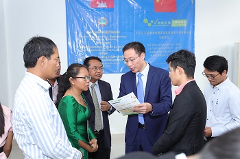 此次捐贈的真菌毒素快速檢測設(shè)備,是我們公司研發(fā)的基于時間分辨熒光免疫層析技術(shù)的最新產(chǎn)品,具有快速、簡便、準(zhǔn)確、定量的特點,結(jié)果高度符合液相色譜方法,可應(yīng)用于大米、玉米、花生等糧油產(chǎn)品中真菌毒素的快速檢測,真菌毒素種類包括黃曲霉毒素、玉米赤霉烯酮、嘔吐毒素、赭曲霉毒素、伏馬菌素、T-2毒素等,希望能為柬埔寨真菌毒素的檢測提供一個有力的工具。