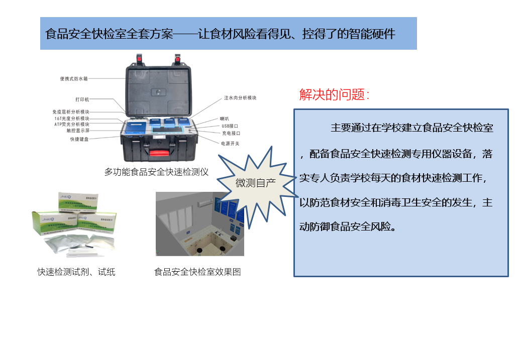 (1)、食品安全快檢室全套方案——讓食材風(fēng)險(xiǎn)看得見(jiàn)、控得了的智能硬件